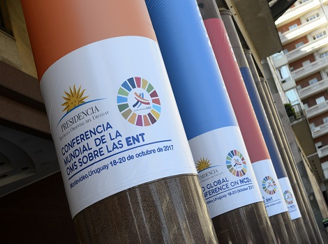 To help address gaps in national policies on noncommunicable diseases (NCDs), the World Health Organization (WHO), the Pan-American Health Organization (PAHO), the Office of the President of Uruguay and the Ministry of Health of Uruguay organized the WHO Global Conference on NCDs. The Conference provided a platform for showcasing high-level political commitment and sharing lessons learned and best practices on how to enhance policy coherence, with a view to attaining Sustainable Development Goal (SDG) target 3.4 – to reduce by one-third premature mortality from NCDs. The Conference also supported the preparatory process in the lead-up to the third High-level Meeting of the United Nations (UN) General Assembly on NCDs in 2018.