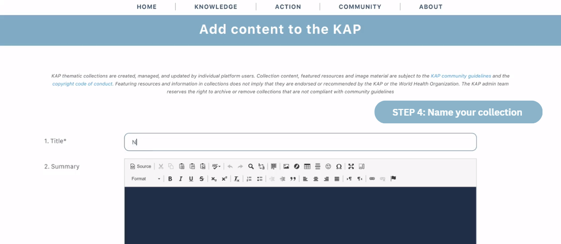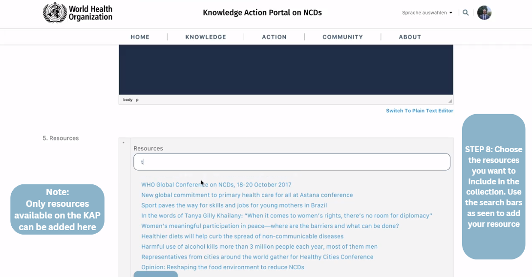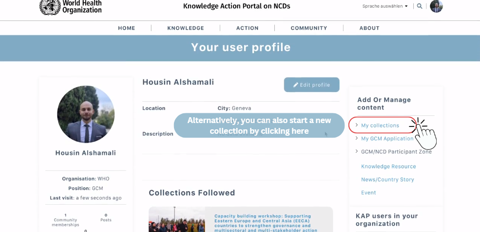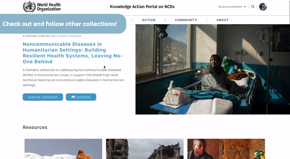Here is how to create, share and follow thematic collections on the Knowledge Action Portal on NCDs.