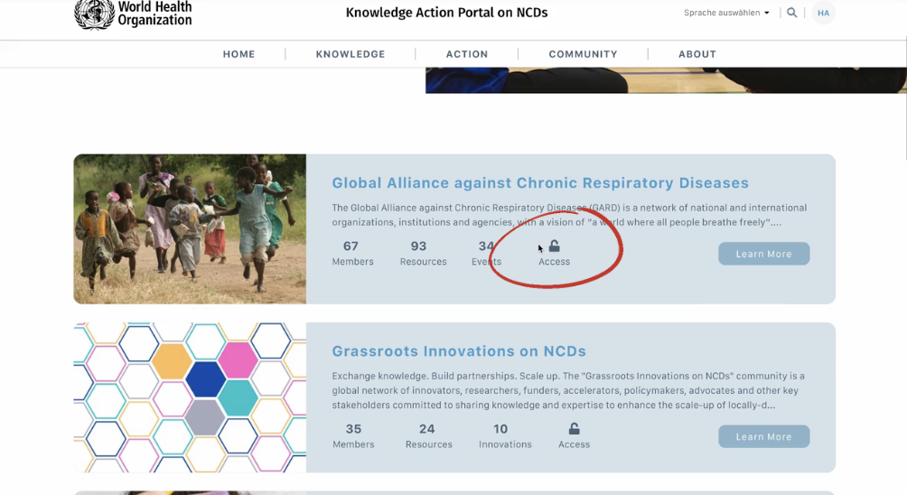 3a. KAP communities can be open or private, and are moderated by one or several community members. You can identify open/private communities by checking the lock icon as seen below.