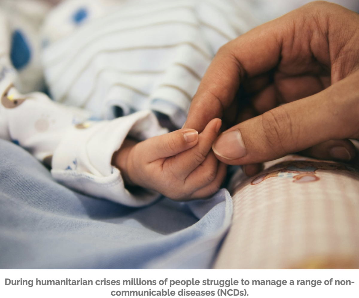 Outbreaks of infectious diseases such as measles and cholera also make the headlines. Yet the parallel reality is that during humanitarian crises millions of people struggle to manage a range of non-communicable diseases (NCDs) such as diabetes, hypertension or cardiovascular illness. Access to their essential medications and health professionals may be non-existent.